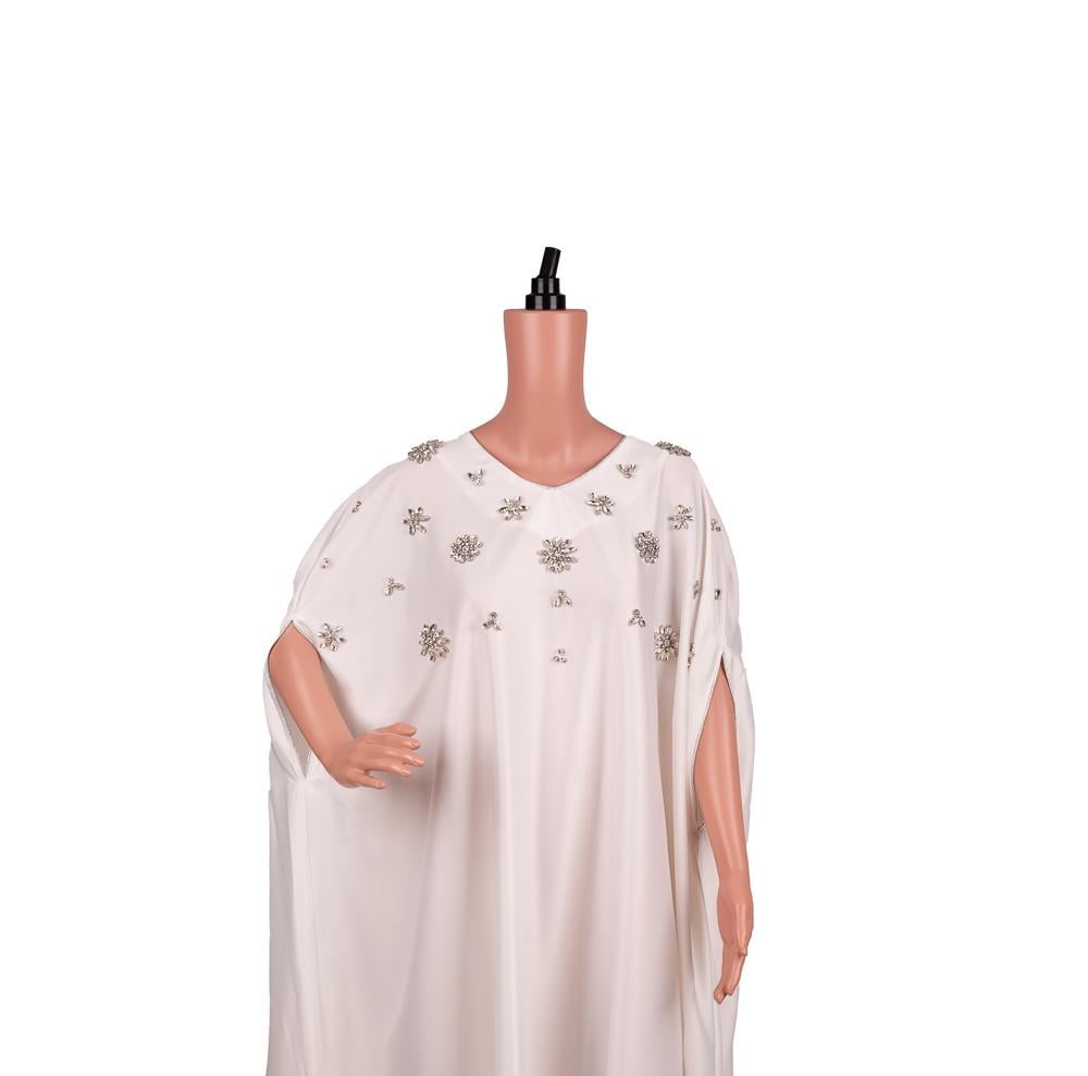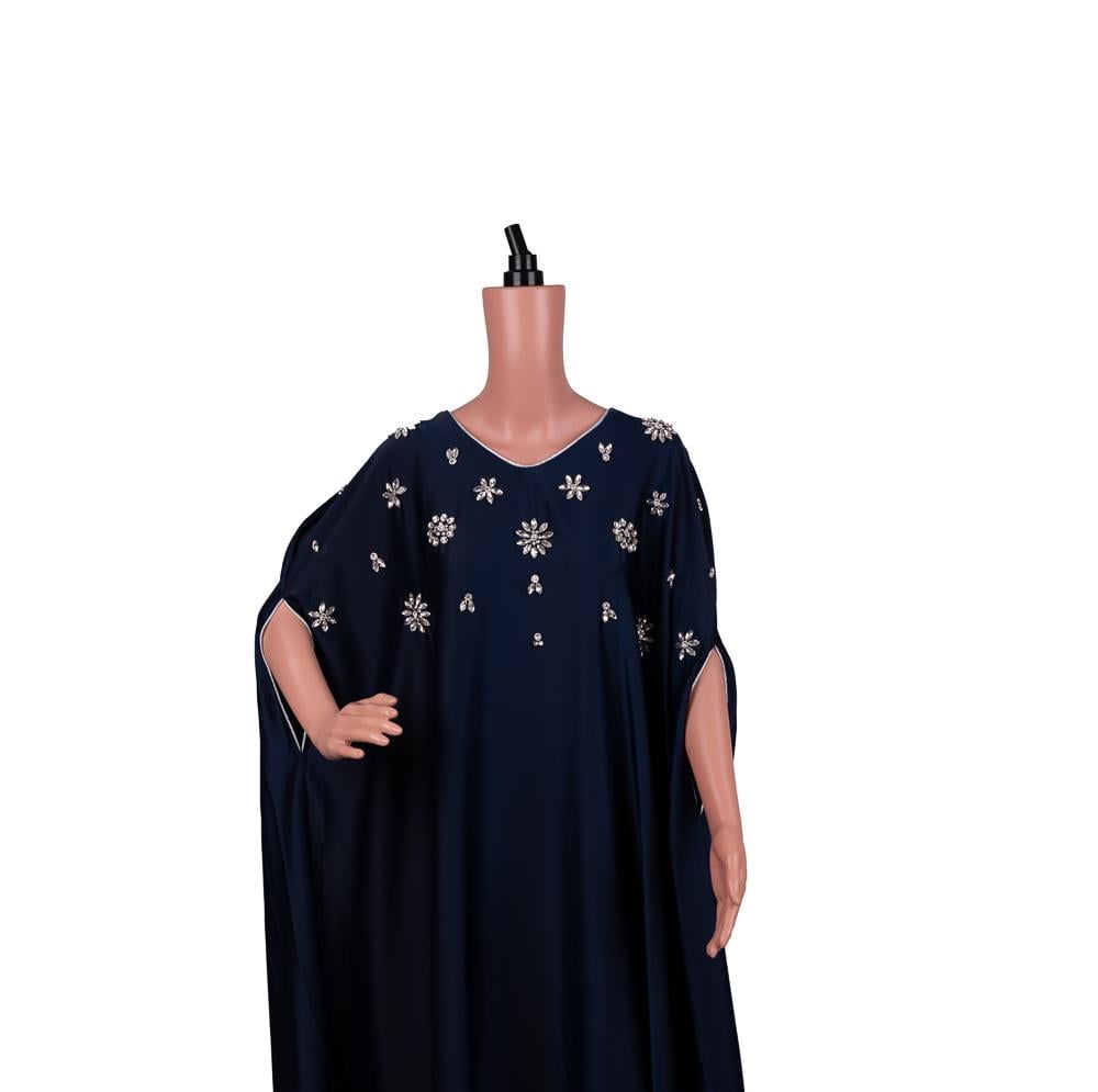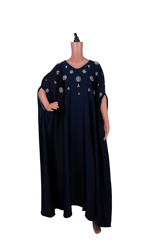 جلابية واسع شك مصنوعه من قماش ستن حرير ومزينة بالسواروفسكي الزجاجي درجة أولى متوفر بألوان ومقاسات متعددة